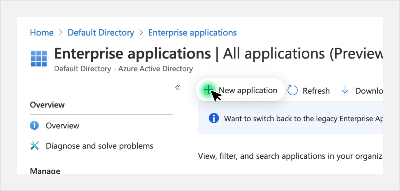 - Click on New Application on Active Directory / Enterprise applications menu and then on Create your own application>Integrate any other application you dob"t find in the gallery (Non-gallery).