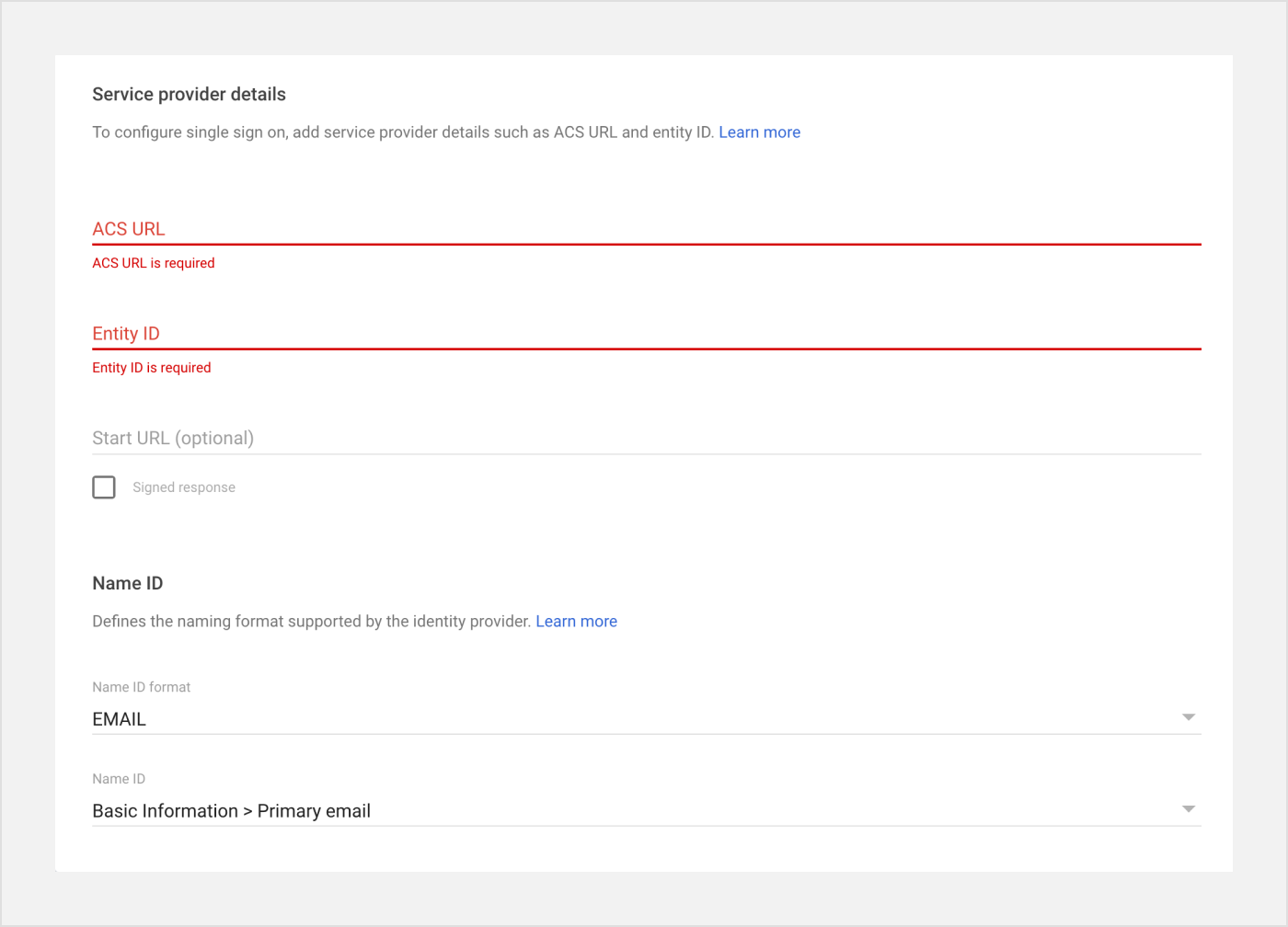 - Issuer: Required by Identity Provider. Unique identifier based on your workspace name.
