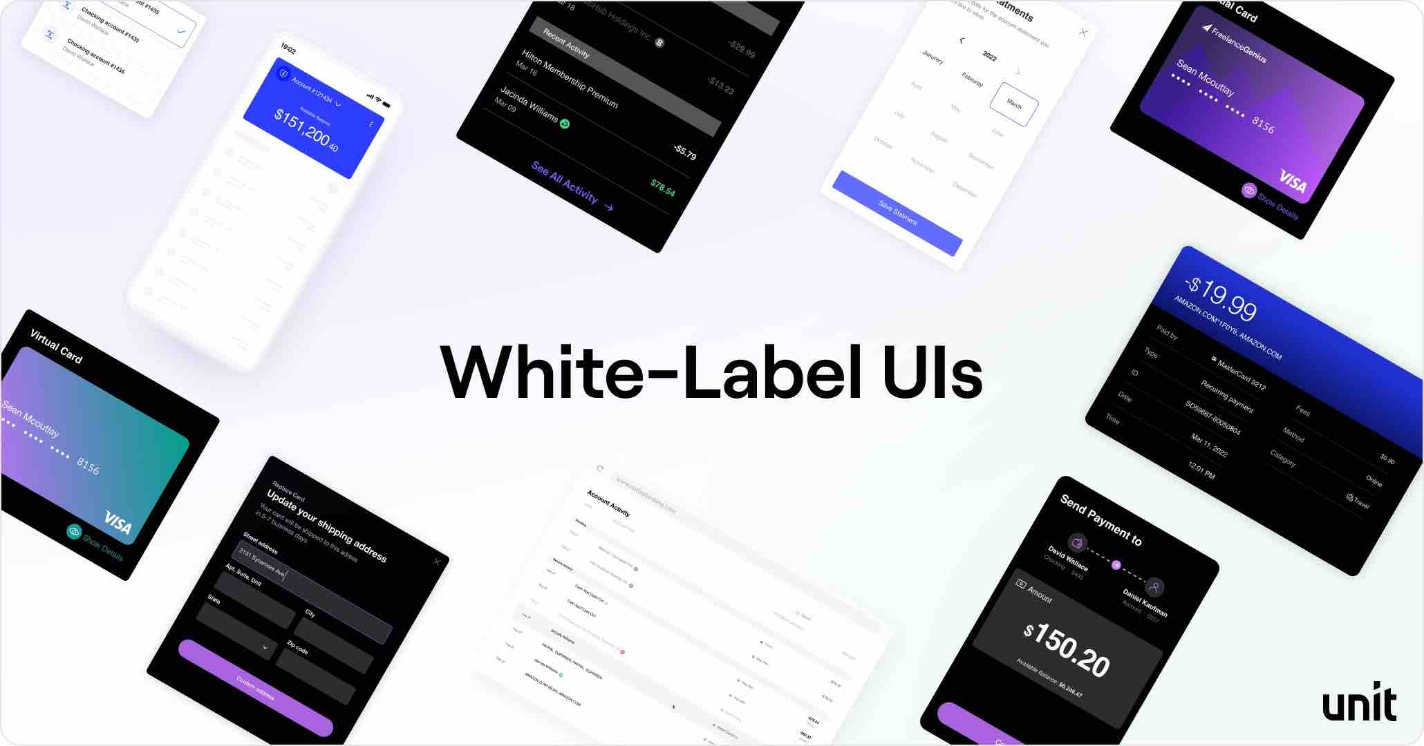Building financial services and banking frontends requires time, expertise and resources. Unit offers a set of White-Label UI Components that simplify the build process, minimize the engineering investment, and significantly shorten time to market, while still providing you with complete flexibility and control.